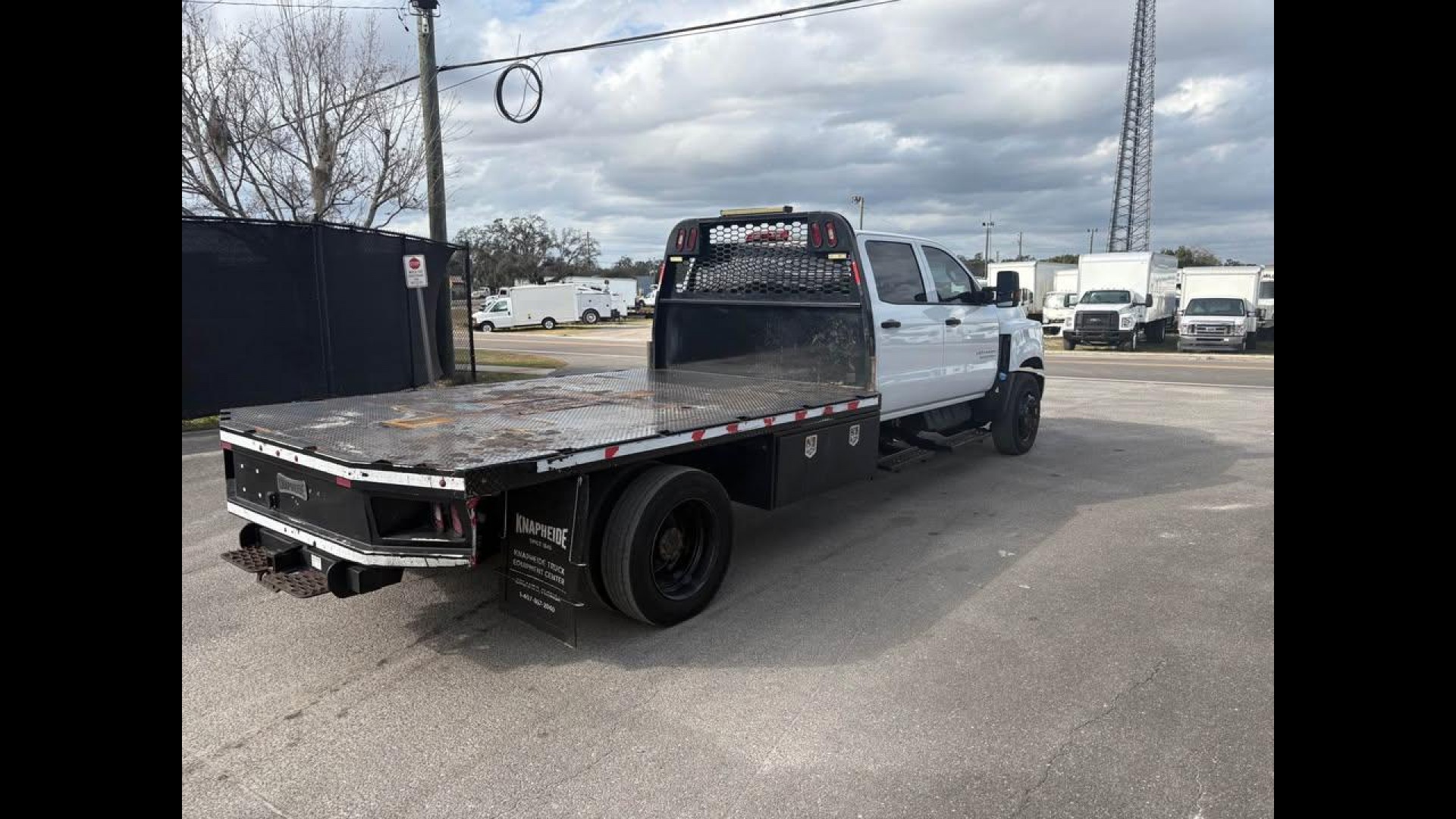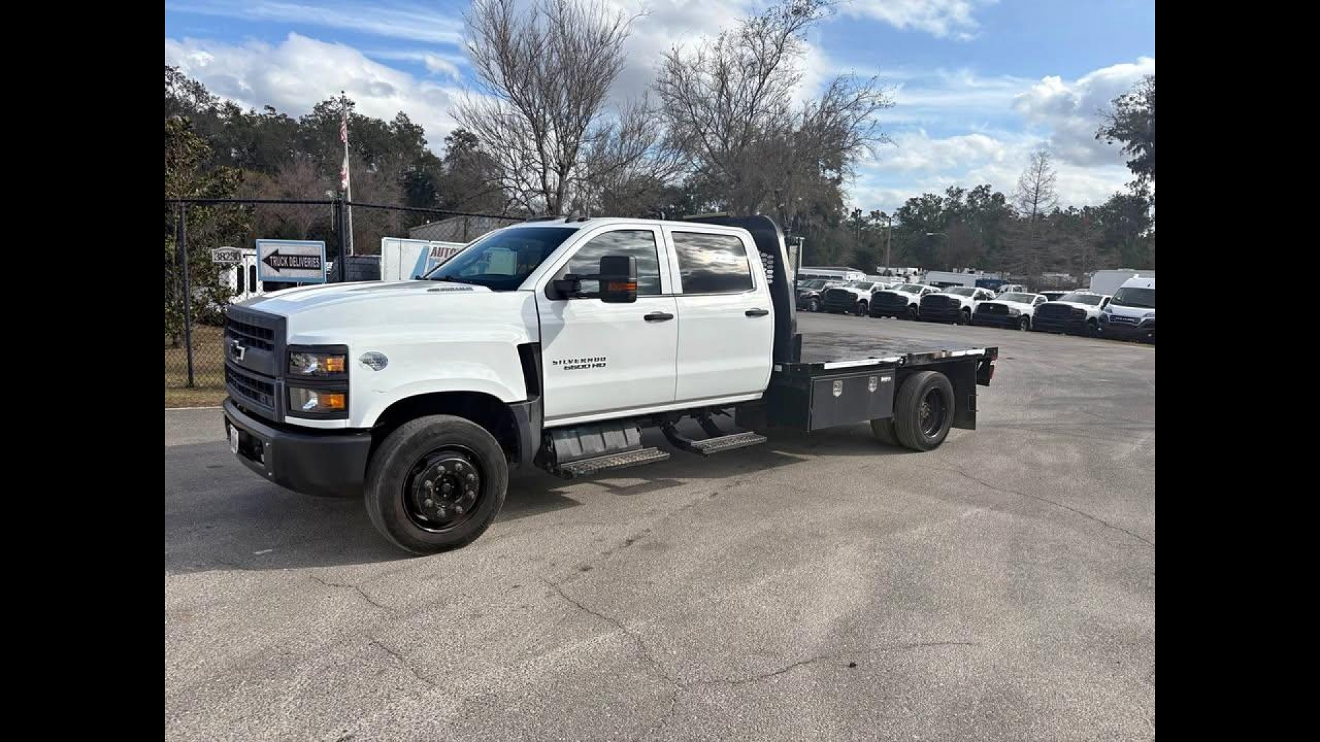 2020 CHEVROLET 6500 4X2 FLATBED WORK TRUCK, DIESEL ENGINE, AUTOMATIC TRANSMISSION, 75K MILES, RUNS GREAT, CLEAN TITLE, WHITE EXTERIOR WITH GREY INTERIOR.
